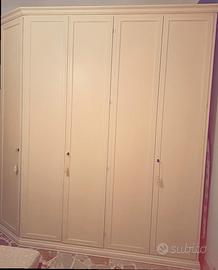 Vendo Camera da letto completa . Letto imbottito sfoderabile con contenitore .Armadio tre ante Giamprini con cassettiera interna .Trittico(Veneziano) interamente in legno massello intarsiato a mano .Panca contenitore