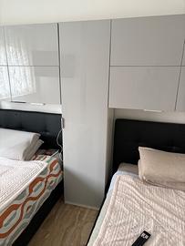 Vendo camera da letto così composta due letti da 1piazza e mezza in ecopelle nera con contenitore 2 armadi bianchi lucidi L100H235P60 due colonne 60x40 x200 una colonna 60x50 m 8 altezza quadretti 120x40x40 la camera è compilonibile a proprio piacere …prezzo 800€ trattabili per maggiorni informazioni chiamare 3888728178 Fabio I quadrotti possono diventare anche arredo per una. Sala da pranzo vendita anche al pezzo x maggiori info contattatemi grazie