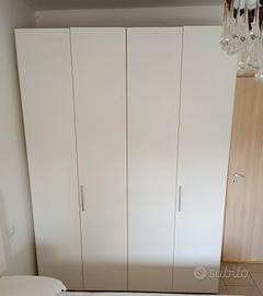 Camera da letto bianca con armadio a 6 ante scomponibile senza letto.