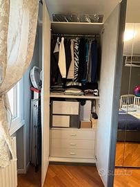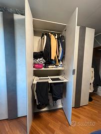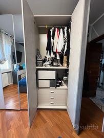 1. Armadio 6 ante con specchio centrale compreso di cassetti e spazio dedicato ai pantaloni.