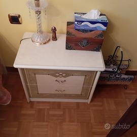Camera da letto completa: armadio a 4 ante, letto matrimoniale con rete matrimoniale, como' con specchio sovrastante, 2 comodini, 2 materassi a una piazza. specchio armadio lievemente lesionato.