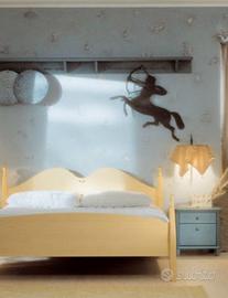 Camera da letto Minacciolo con solo il letto di colore azzurro come in foto., composto da settimino , armadio a 6 ante e 2 comodini.Essendo di legno c'è qualche segno sulle porte dell'armadio ma c"e il set di cera e ritocco di Minacciolo. È un poco impolverato perché è in un deposito. L'ultima foto serve solo per far capire la composizione letto con comodini. Il letto è azzurro polvere