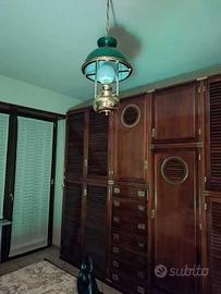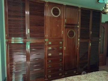 CAMERA DA LETTO COMPLETA ACQUISTATA DALLA DITTA NAVALFORM DI LIVORNO, LEADER NEL SETTORE MOBILI MARINA. STILE '800 INGLESE IN LEGNO DI MOGANO. LA CAMERA E' DOTATA DI DUE COMODINI, 2 LAMPADE E UN LAMPADARIO COORDINATI, I SEDIA, LETTO CON TESTATA MEZZO TIMONE, 2 BOCCAPORTI, UN MOBILE CON SPECCHIO, UN ARMADIO, RIFINITURE IN OTTONE. ATTUALE VALORE DI ACQUISTO NUOVA 20.000,00 EURO. VERO AFFARE. PREZZO TRATTABILE.