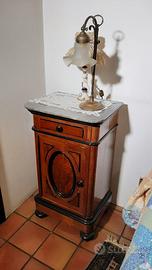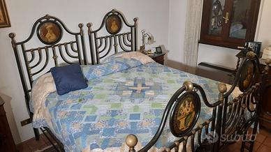 Vendesi in blocco camera da letto matrimoniale composta da: - letto matrimoniale in ferro battuto 190x220, h. 85 (142/170 h. spalliere) - mobile toilette con specchio, piano in marmo grigio, 120x61, h. 102 (h. max 207) - coppia di comodini, piano in marmo grigio 47x37, h. 84 - armadio combinato da restaurare IN REGALO Prezzo trattabile