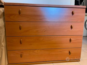 Vendo camera da letto color ciliegio con armadio 3 ante, cassettiera 4 cassetti e due comodini. In ottime condizioni.