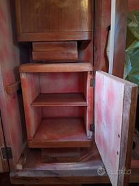 camera da letto composta da comò con specchio, armadio a tre ante, due comodini, in legno impiallacciato anni 50