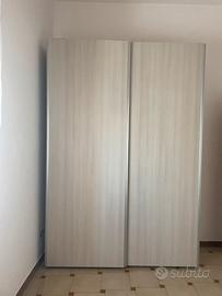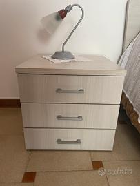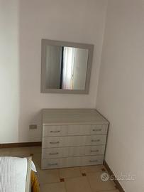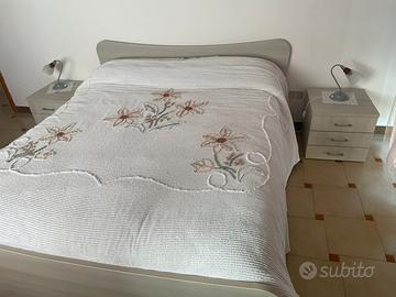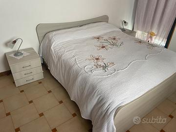 Vendesi camera da letto composta da: struttura letto matrimoniale, due comodini, comò e armadio con due ante scorrevoli. Color grigio chiaro. Acquistata al prezzo di € 1390,00.