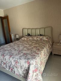 •Letto matrimoniale con testata imbottita (necessario rivestimento). Materasso 160 cm x 200 cm.