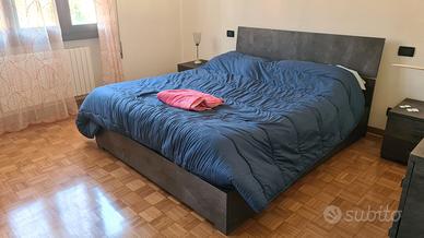 Vendo per necessità di trasloco, a prezzo affare, camera Mondoconvenienza modello Freccia praticamente nuova, dotata di armadio 3 ante scorrevoli con centrale specchiato L.274 P.62 H.253 COLORE OSSIDO / CEMENTO, un letto matrimoniale con contenitore, comò, 2 comodini e specchio. Interni in finitura tessuto. Materasso non incluso. Trasporto non incluso.