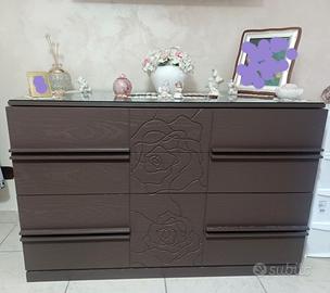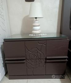 Il comò è i comodini hanno un vetro poggiato, removibile non fisso.
