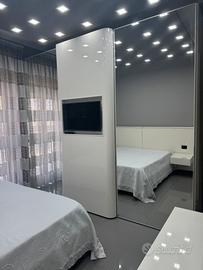 Camera da letto completa con armadio tre ante , con vano per tv , letto contenitore rivestito di pelle e comodini sospesi , comó.