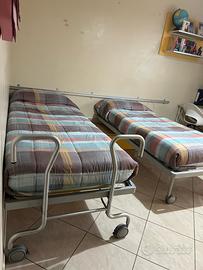 Letti compresi di materasso. Tre cassettoni da inserire sotto i letti. Due mensole e un armadio a quattro ante. Tutto in discrete condizoni