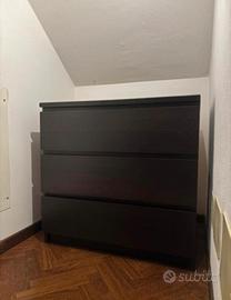 Misure in cm: letto Kingsize + comodini inglobati: larghezza totale testata 298cm (di cui ogni comodino 50cm/ larghezza solo letto 198cm), altezza testata 78cm, lunghezza totale testata-fondo 210cm materasso Kingsize su misura Dorelan: 180cmX200xm (2 set lenzuolo + federe in dotazione) mobile basso tv: lunghezza 150cm, profondità 55cm, altezza 35cm poltrona con cuscini: larghezza 68cm, profondità 78cm, altezza 68cm mensola: larghezza 110cm, profondità 26cm comò 3 cassetti: lunghezza 80cm, profondità 48cm, altezza 77cm mobile kallax 8 vani: lunghezza 150cm, profondità 38cm, altezza 79cm specchio: base 40cm, altezza 158cm Vendo per trascolo camera matrimoniale composta da 8 elementi ikea in legno nero. 2 adesivi applicati come si vede da foto verrano accuratamente rimossi. Tot. Acquisto 2.000,00 circa, rivendo - 50% per tutto 1.000,00 (Trattabili).