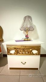 Si tratta di una camera da letto matrimoniale in stile barocco-neoclassico (cornici dorate, laccatura bianca, specchi centrali), composta idealmente da: