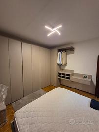 Camera Da Letto Completa, armadio con angolo e esposizione a giorno, Completa di cassetto, Letto King Size, 200 x 190, con testina imbottita e luci su tutto il perimetro,