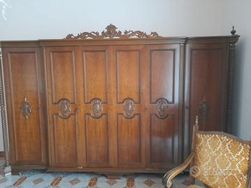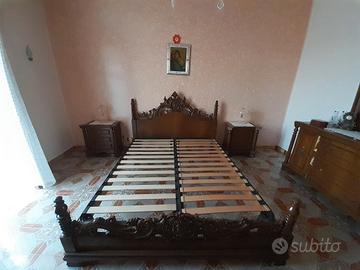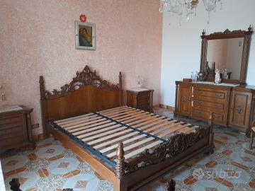 1 armadio, 1 comò, 1 letto, 2 comodini, 2 poltrone anni 70 in legno massiccio, tutto intagliato .. regalo