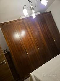 Camera da letto in legno massello. Comprende; un armadio a 6 ante, letto matrimoniale, 2 comodini con libreria sovrastante e comó con specchiera.