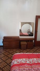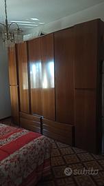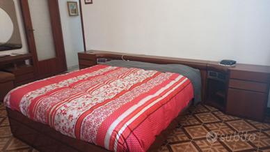Camera da letto matrimoniale in legno in buono stato. Armadio 6 ante. Testata del letto contenitore. Testiera e comodini sono lunghi 330 cm. Letto con materasso. Cassettiera spaziosa e toeletta trucco. Smontaggio e ritiro in loco.