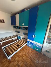 Camera da letto completa per 2 spaziosa e colorata con aggiunta di mobile bianco Con qualche piccolo graffio qua e la ma poco visibile Prezzo trattabile Misure: Altezza m 2.60 Lunghezza m 3.60