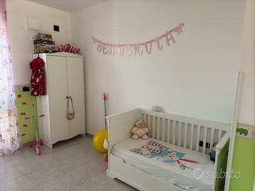 Vendo camera da letto completa bianca come nuova,composta da armadio di 2 ante, cassettiera con 4 cassetti e culla lettino adatto fino ai sei anni. Per informazioni e foto contattatemi pure. No spedizione