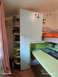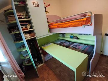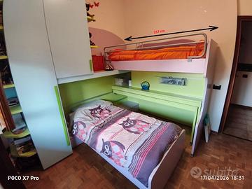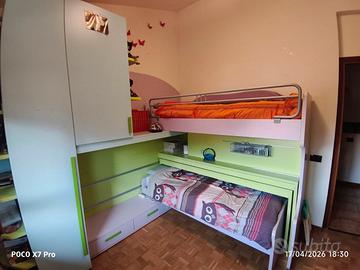 Camera da letto molto funzionale come lo si può vedere anche dalle foto. Struttura del letto superiore, letto inferiore e scrivania poggiano su ruote e si spostano in maniera indipendente tra loro per avere spazio e funzionalità in base ai momenti della giornata. Struttura molto robusta (non é una camera Ikea per intenderci). Acquistata 7 anni fa nuova ma ora, causa trasloco, siamo costretti a lasciarla. Non presenta botte o ammaccature. Le misure sono riportate in foto. Possibile visionarla in loco. No perditempo e soprattutto no cacciatori di affari. Vendo una camera seria e gradirei avere a che fare con gente seria. Il prezzo é trattabile. Disponibile per qualsiasi ulteriori chiarimenti. No chiamate dirette ma usate sempre prima whatsapp. Grazie.