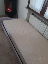 Vendo camera da letto in buono stato con struttura di 2 letti (possibilità di estrarre il terzo da terra), scaffale, comodino, armadio e 2 materassi.