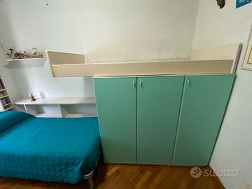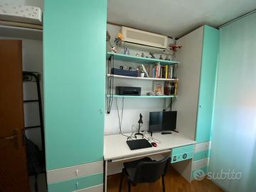 Vendo camera da letto per bambini verde e bianca in buone condizioni, compreso di tende e lampadario. ( LETTO ESCLUSO) La camera da letto è formata da: Armadio basso a 3 ante: 150x135x93 cm Mensola bassa: 200x75x26 cm Scrivania: 150x75x60 cm 2 Armadi grandi: 260x60x60 cm 3 Mensole sopra la scrivania: 135x100x25 cm Per altre foto ed info contattatemi. Ritiro a carico dell'acquirente.