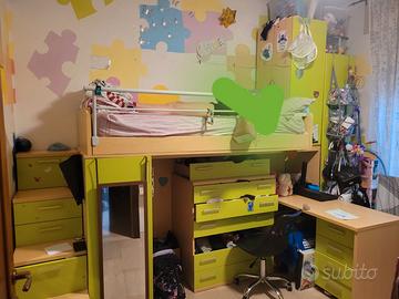 Vendo camera da letto per bambini con 3 reti e 3 materassi, cassettiera, tavolo e pensili