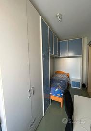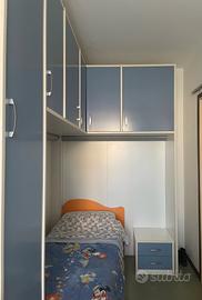 Struttura armadio con angolo e comodino annesso (materiale: legno). Letto singolo a doghe. Le misurazioni sono illustrate nell'ultima immagine. Prezzo contrattabile. Per ulteriori informazioni non esitate a chiedere.