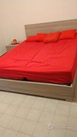 la camera e composta da armadio con tre sportelli ,2 comodini e letto 2 piazze con contenitore