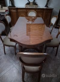 camera da letto con comò armadio comodini specchiera e letto piu soggiorno con tavolo per sei con sedie coordinate vetrina e mobile basso. solo ritiro con vs .mezzi