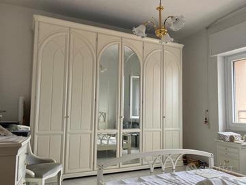 Vendo camera da letto matrimoniale composta da letto ( testiera e rete ) , due comodini, comò , armadio e poltroncina .