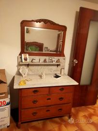 Camera matrimoniale in noce nazionale con letto divisibile, 2 comodini, cassettone con piano in marmo e specchiera, armadio 3 ante con specchio,