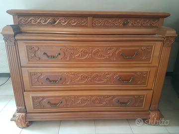 Vendesi camera da letto in legno intarsiato, stile '600 veneto, di produzione Dall'Agnese, completa di armadio sei ante con cassetti e specchi interni, comò con specchiera, letto e due comodini. Pezzo trattabile. Smontaggio e trasporto a carico dell'acquirente (armadio già smontato). Per informazioni : 3391120211