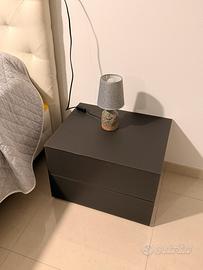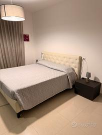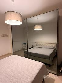 Vendo camera da letto composta da: - armadio con 2 ante scorrevoli a specchio fumè H246cm L277cm P62/66cm, color grigio fumè - comodini vetro grigio fumè - letto matrimoniale (160x190cm) bianco testiera ecopelle bianca con impunture