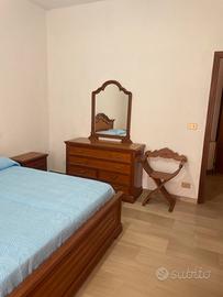 Camera da letto composta da: un armadio, due comodini, letto matrimoniale e cassettiera 4 cassetti. I mobili non hanno uno stile moderno ma possono ritenersi abbastanza contemporanei. sono in ottimo stato.