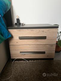 Camera da Letto con: 1 Letto Contenitore (senza materasso) 2 Comodini 1 Cassettiera misure 115x46x85 cm 1 Specchio Letto smontato Consegna a carico dell’acquirente