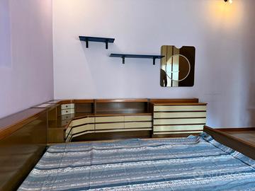 Set di mobili composta da, arnadio letto comodini, specchio e una poltrona non visibile in foto. Particolare camera, di ottima fattura, per chi cerca uno stile retrò. Smontaggio e trasporto a carico dell’acquirente