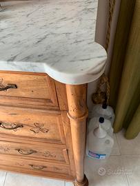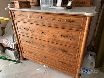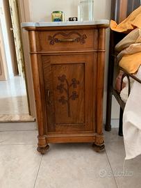 Splendida camera dei primi del ‘900 in ottime condizioni formata da armadio con specchio, due comodini con marmo e due como' con marmi e specchi, toeletta da camera con specchio ovale cassetto e marmo.