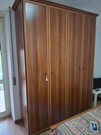 Vendo camera da letto matrimoniale completa di armadio a 4 ante H cm 250 L cm 180 P cm 58 + como' 4 cassetti H cm 84 L cm 110 P cm 45+ letto matrimoniale L testata cm 170 compreso di rete e materasso,usata pochissimo solo ferie estive, € 400 smontaggio compreso,trasporto e montaggio a carico dell'acquirente. tel.3476419570