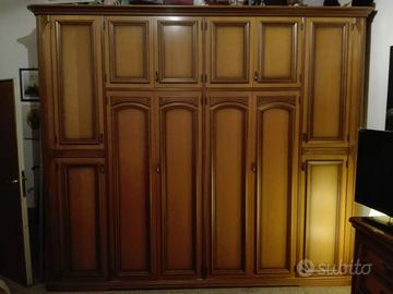 Completa di 2comodini, comò con specchio, armadio, letto matrimoniale con 2reti singole e testata in legno per contenerle + quadro religioso a capezzale.