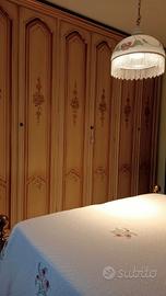 Vendo camera da letto stile veneziano composta da testata letto in ottone lucido comò in piuma di mogano con quattro cassettoni comodini specchiera e un armadio a tre ante tutto decorato ... condizioni molto buone... prezzo trattabile
