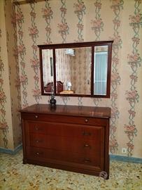 Camera da letto in legno di noce composta da: letto matrimoniale con due reti singole, comodini, comò e specchiera, tutto in ottimo stato.