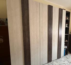 Vendo per trasloco in appartamento più piccolo camera da letto completa dal design moderno e lineare, acquistata nel 2022. I mobili presentano un elegante contrasto cromatico tra il legno chiaro venato e gli inserti scuri (finitura rovere), perfetti per ogni tipo di arredamento contemporaneo.