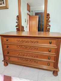 Camera da letto legno con due comodini, comò con specchio, più letto, conservata benissimo senza graffi