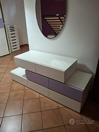 Vendo causa trasloco camera da letto matrimoniale con comò,comodini,armadio tre ante e letto contenitore.Camera in legno no truciolato.Trasporto e smontaggio a carico dell acquirente