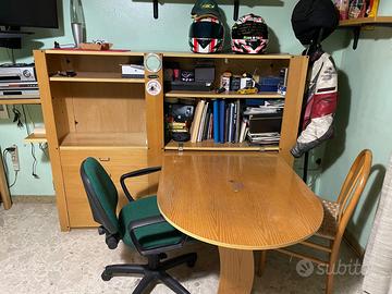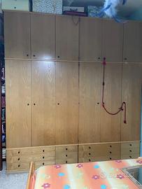 Camera da letto per ragazzi, in frassino, composta da : due letti singoli, un comodino, una scrivania 127 x 58 cm, una libreria con tavolo ribaltabile, un guardaroba 280 x 254 x 60.