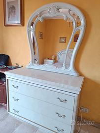 CAMERA MATRIMONIALE LETTO CON RETE A DOGHE DI FAGGIO DUE COMODINI COMO' E SPECCHIO COLORE AVORIO STILE CLASSICO MA ANCHE MODERNO ELEGANTE VISIBILE A SASSARI PREZZO TRATTABILE