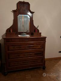 Camera da letto in noce in perfettissime condizioni con armadio como con specchio due letti due comodini e due poltroncine. Epoca seconda meta dell’Ottocento