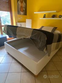 Armadio a due ante scorrevoli specchiato con cornice in color acciaio satinato. Alto 2 metri e largo 1,80 per 60 cm di profondità Libreria bianca alta 1,90 e larga 2 metri e profonda 36 cm Letto contenitore bianco 140x2m